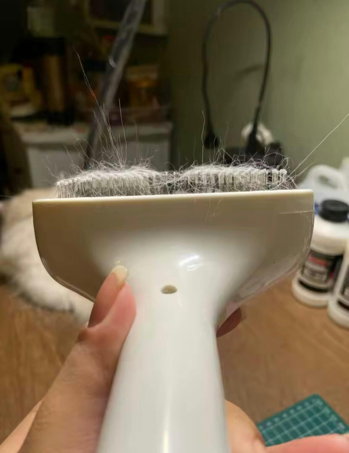 Non ne posso più fare a meno il mio Leo me la porta tra i denti per farsi spazzolare infatti l'ha graffiata e ne ho ordinata un'altra! Grazie da Cettina